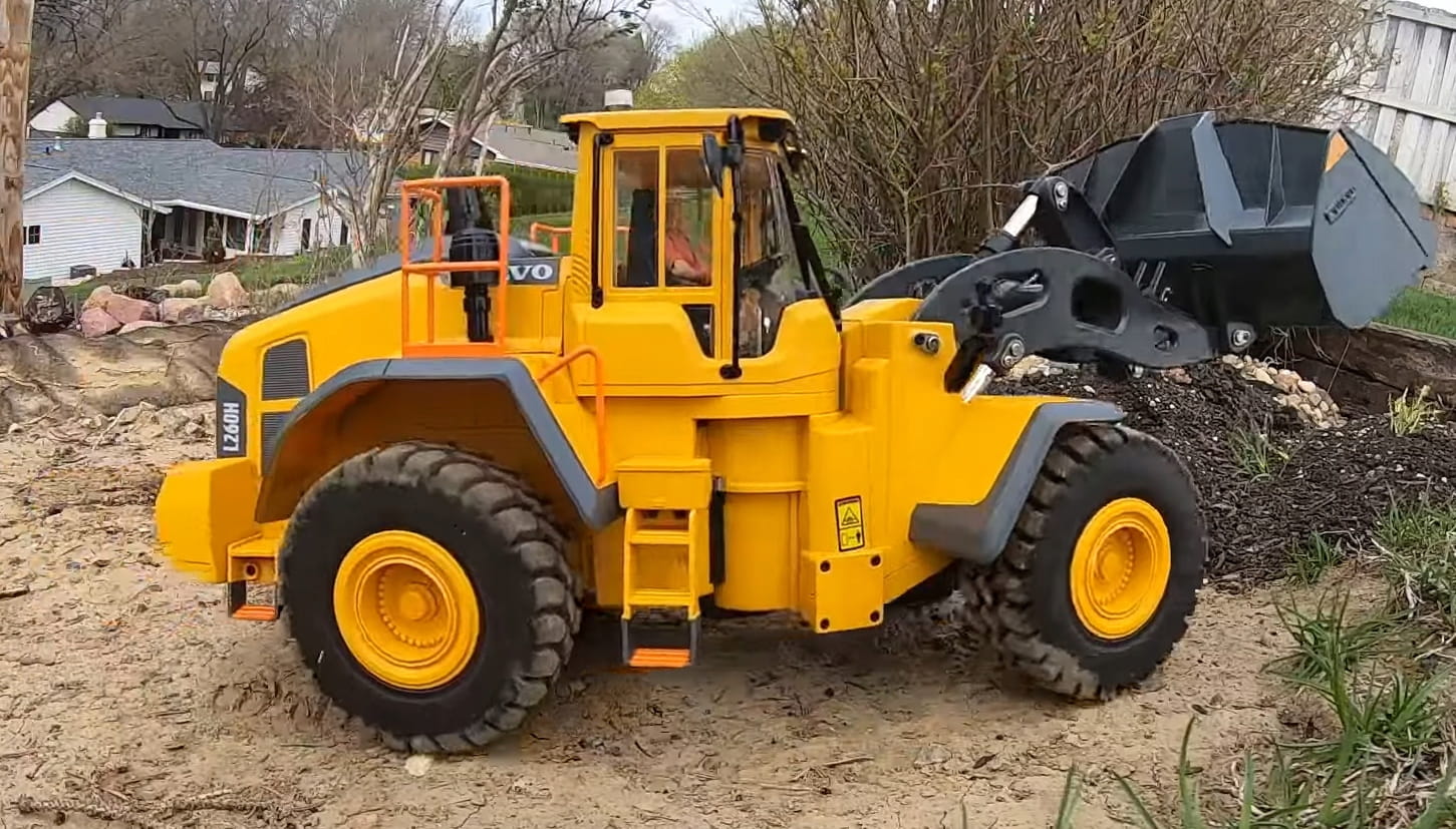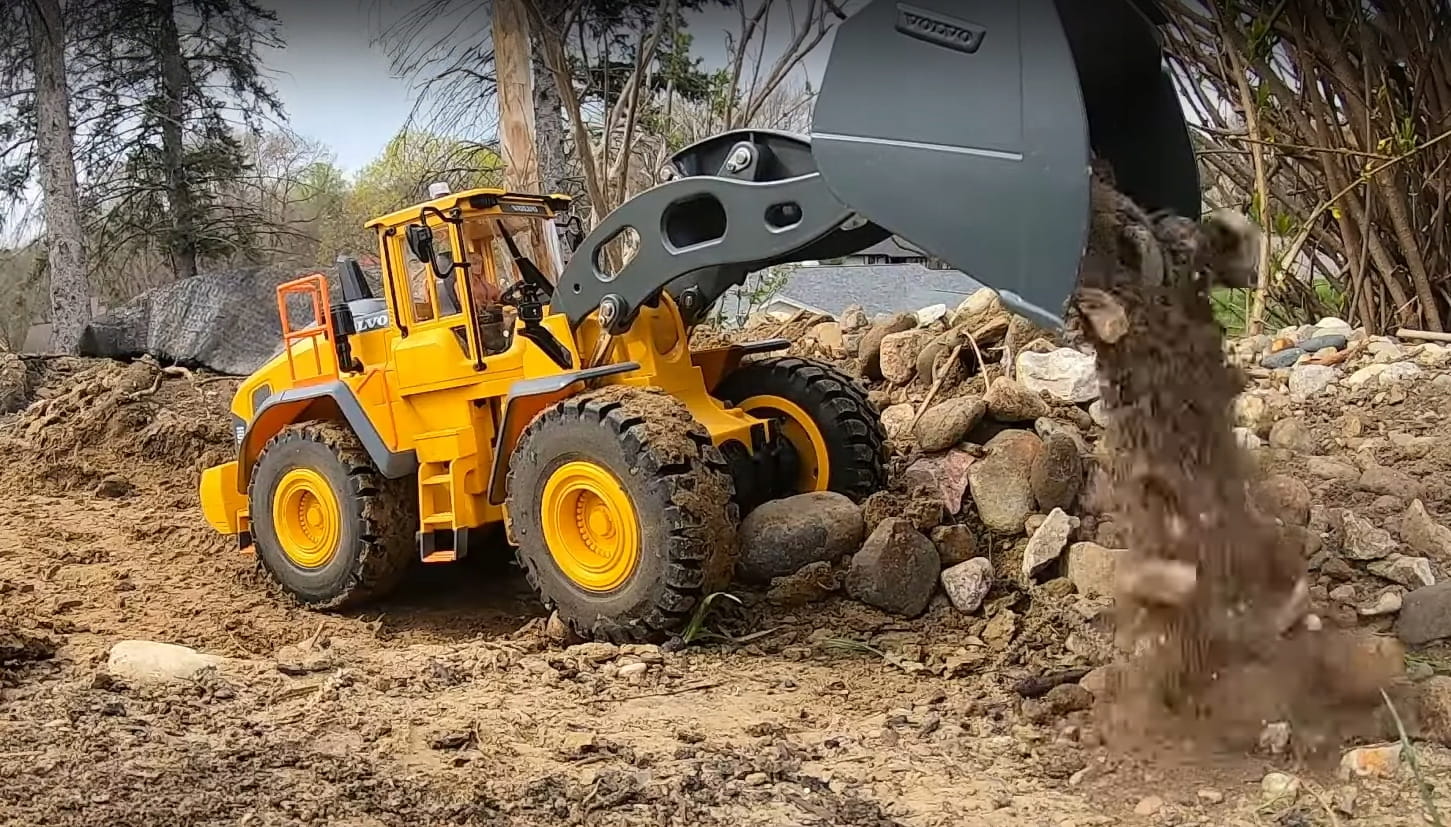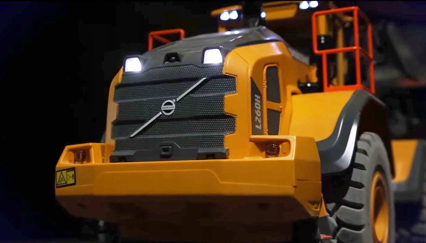 Prawdziwe światła do jazdy nocnej oraz dźwięki pracy silnika, cofania oraz skrętu tylko dodają autentyczności modelu. Prowadzi się i wygląda jak prawdziwa maszyna budowlana marki Volvo