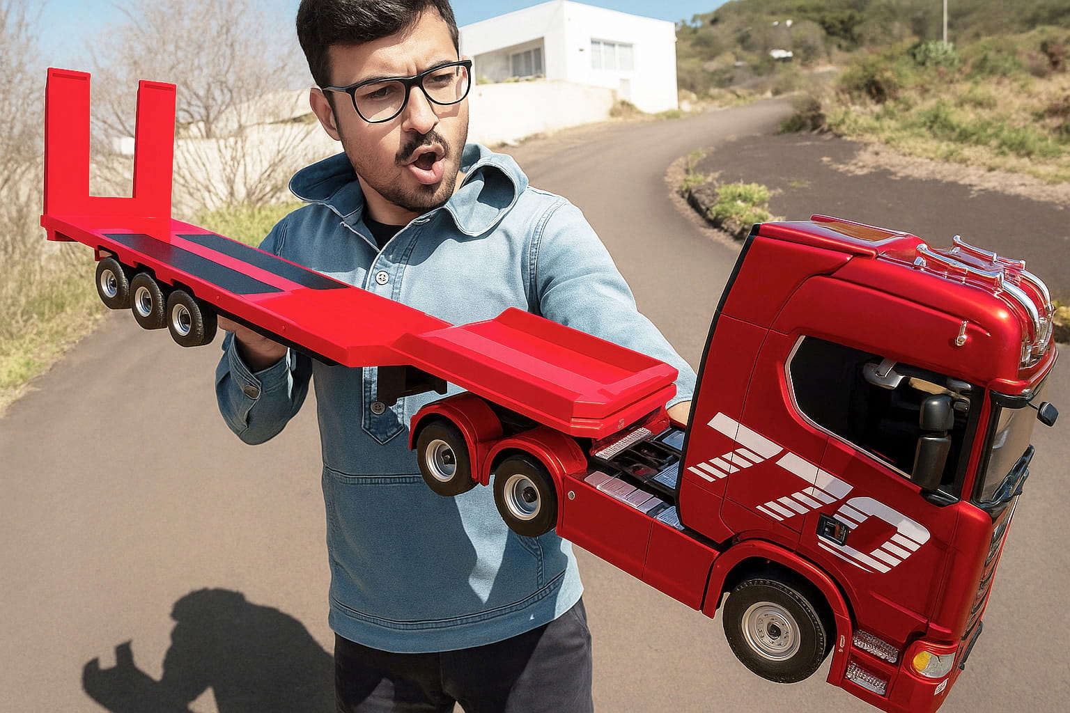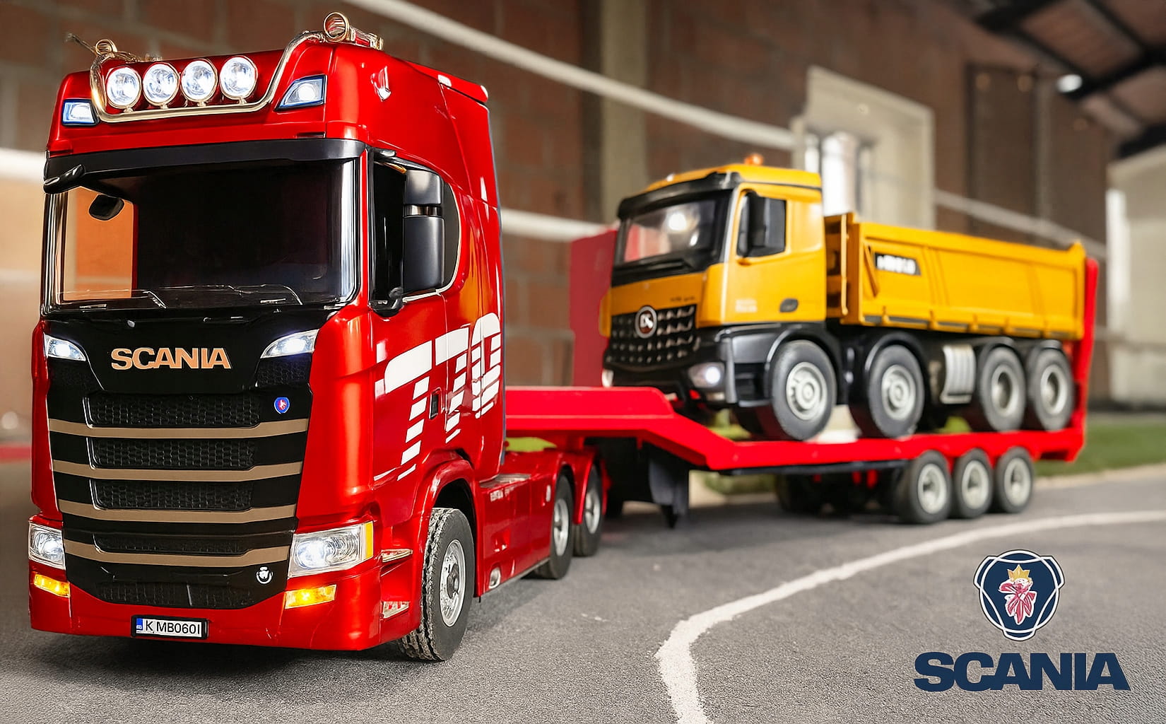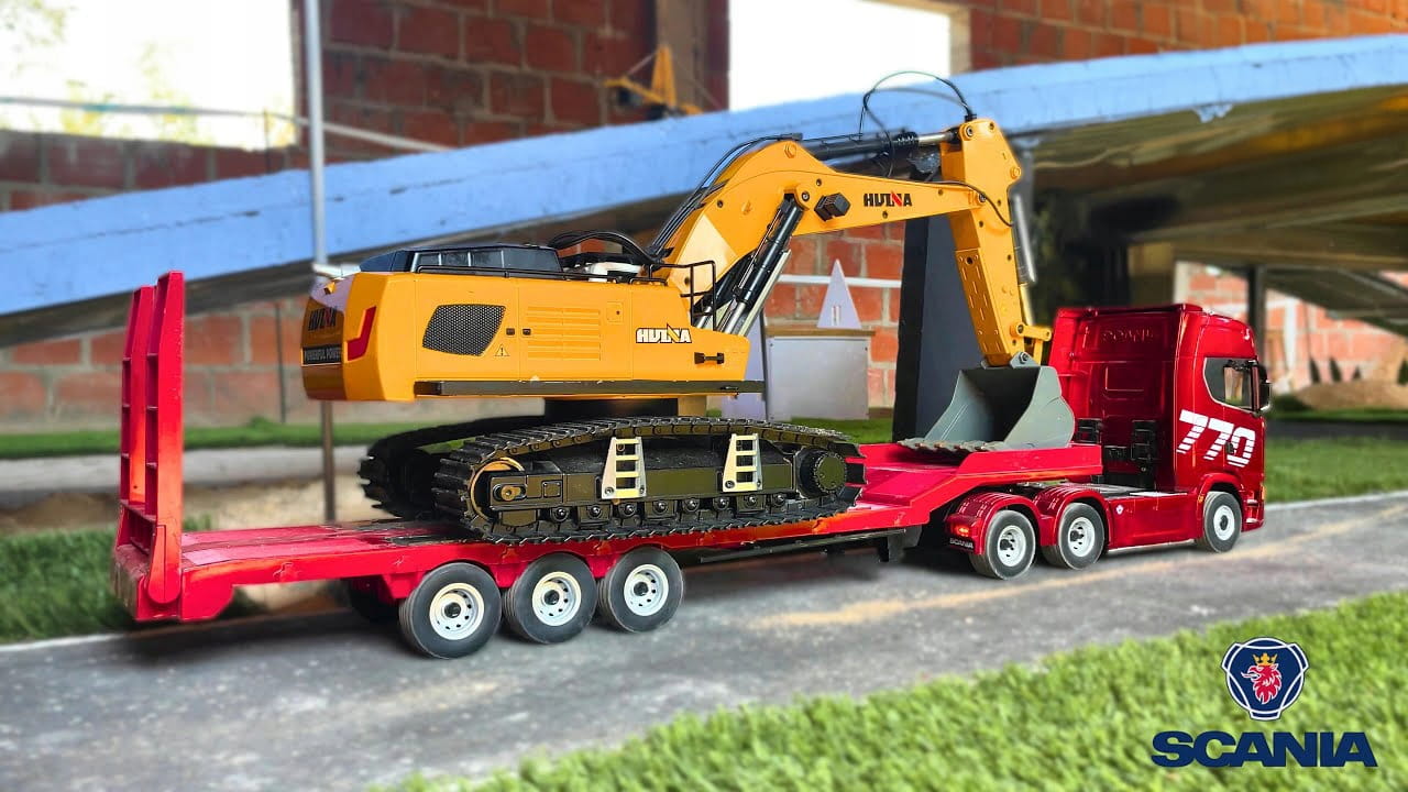 Realistyczna, 3-osiowa naczepa typu flatbed do modeli ciężarówek w skali 1:18. Zaprojektowana specjalnie do współpracy z ciągnikiem Huina 1501 (Scania 770). Po podpięciu sterujesz elektryczną rampą tylną oraz elektrycznymi podporami bezpośrednio z aparatury ciężarówki. Metalowe poszycie platformy zwiększa wytrzymałość, a długość około 73,5 cm daje mnóstwo miejsca na „ładunek” – koparki, ładowarki, samochody czy inne modele.