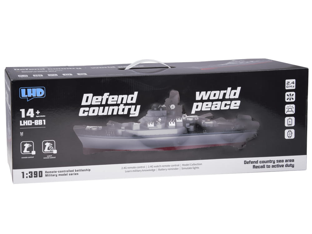 Zdalnie sterowany statek Pancernik LHD-881 to wyjątkowy model w skali 1:390, który zachwyca swoimi rozmiarami i realistycznym wykonaniem. Dzięki długości aż 60 cm robi imponujące wrażenie na wodzie, a intuicyjne sterowanie sprawia, że korzystanie z niego jest proste i przyjemne. To świetna propozycja zarówno dla miłośników militariów, jak i pasjonatów modeli RC.