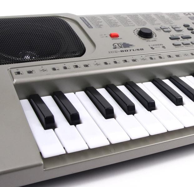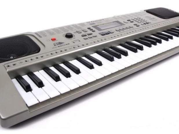 Keyboard z mikrofonem i funkcją nagrywania sekwencji dźwiękowychEstetycznie i solidnie wykonane kierowane głównie do najmłodszych.Edukacyjna zabawka za odpowiednią cenę.Miękki skok klawiszy zapewnia komfortową grę dla delikatnych rączek u dzieci.Nie zawiera ostrych krawędzi i nie naraża na niebezpieczeństwo.DANE TECHNICZNE:54 klawiszePort USBmożliwość odtwarzania podkładów MP3mikrofonpłynna regulacja głośności100 różnych brzmień100 styli rytmicznychprzycisk uruchamiający akompaniamenttryb akordów SINGLE - poszczególne akordy zagrane razem tryb akordów FINGER - poszczególne akordy zagrane osobno przycisk nagrywaniaprzycisk odtwarzania z możliwością edycji tonówDRUM MODE pięć kombinacjiprogram naukidemonstracja możliwości keyboarduprzycisk START/STOPwyświetlacz LCDprzyciski VOLUME/TEMPOefekty - SUSTAIN VIBRATO ECHOwyjście głośnikowegniazdo mikrofonowegłośniki stereoZasilanie - DC 9V zasilacz w zestawiemożliwość zasilania z ;baterii 6 x AA (brak w zestawie)WYMIARY:Długość: 695 mmSzerokość: 230 mmWysokość: 80 mm