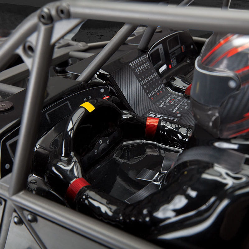 Pięknie i precyzyjnie uformowane detale tworzą Pro-Scale. Repliki zacisków i tarcz hamulcowych, podnośnik podłogowy z rączką, akumulatory, wentylatory, puszki olejowe, gaśnice i zbiorniki amortyzujące zapewniają całkowity realizm.