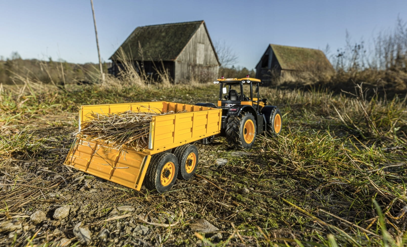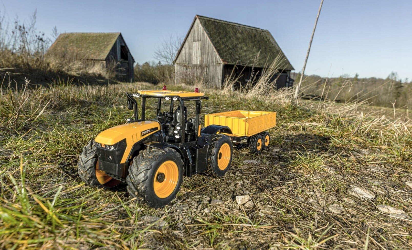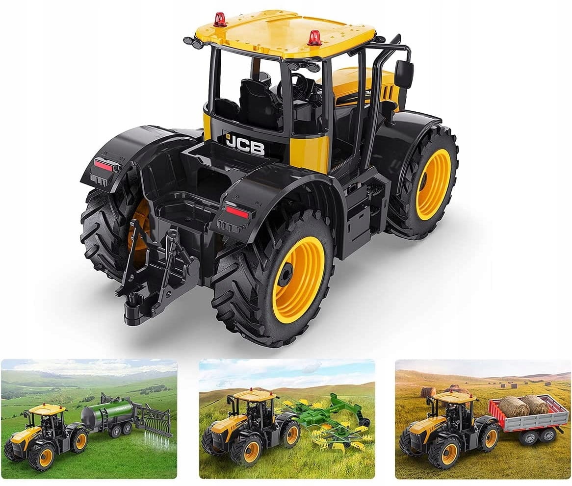 ZDALNIE STEROWANY TRAKTOR Z PRZYCZEPĄ, MODEL JCB FASTRAC 4200 W SKALI 1/16